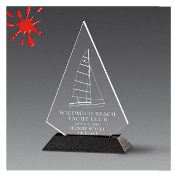 3/8" Thick clear or jade acrylic. Celebrate your accomplishments with our economical Pop-Triangle acrylic award. The glossy acrylic is mounted on a weighted black plastic base. You can also choose from two exquisite colors - clear or jade green - that best suit your style and preferences. Our laser engraving option provides a frosted look that offers excellent contrast, while our full-color printing option adds a vibrant touch to your artwork. Whether you recognize an outstanding employee, a top-performing student, or an exceptional team, our acrylic award is the perfect way to show appreciation. It is an excellent choice to acknowledge and honor the hard work and dedication of someone who deserves it. Order now to recognize your top performers!